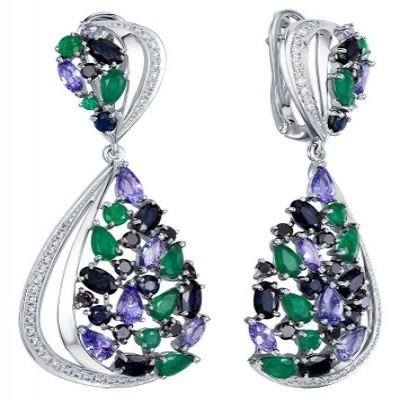 Серьги из белого золота с подвесками Vesna jewelry 21177-251-203-00 с изумрудами, сапфирами, танзани ₽259800.0 |