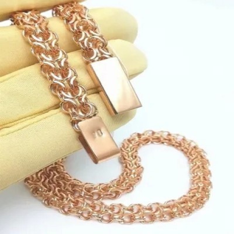 Золотая цепочка Рамзес из красного золота 585 пробы, полновесная, замок коробочка, длина 60см, вес 63,40г Цепочка плетения Рамзес является универсальной,  красиво смотрится и на мужчине, и женщине. Плетение Рамзес - это разновидность плетения Бисмарк, хотя и абсолютно непохожая на первый взгляд.   Для изготовления этого красивого плетения спаивают между собой две симметричные цепи. Цепочка комплектуется удобным и надежным замком в виде коробочки. Длина цепочки 60 см, ширина полотна цепи 8 мм. Качество сплава ювелирного изделия подтверждено клеймом Российской государственной пробирной инспекции, изделие соответствует требованиям отраслевого ювелирного стандарта ОСТ 117-3-002-95. В подарок любимой, на день рождения, на свадьбу, на выпускной, на праздник, себе, девушке, женщине, маме, мужу, брату, любимому, папе, дедушке, бабушке, сестре, подруге, крестной, тете, племяннице, для себя, на Новый год, на 8 марта, на 14 февраля, на юбилей, без повода, на каждый день.