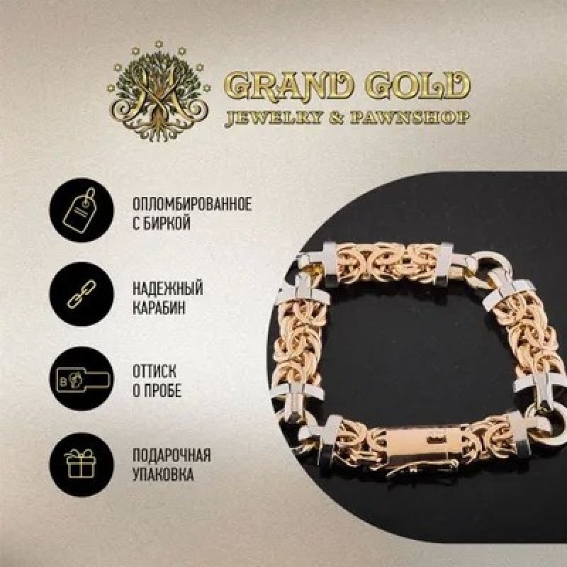 GRAND GOLD Браслет Византийского плетения из комбинированного золота полновес Золото 585 Размер 20,5