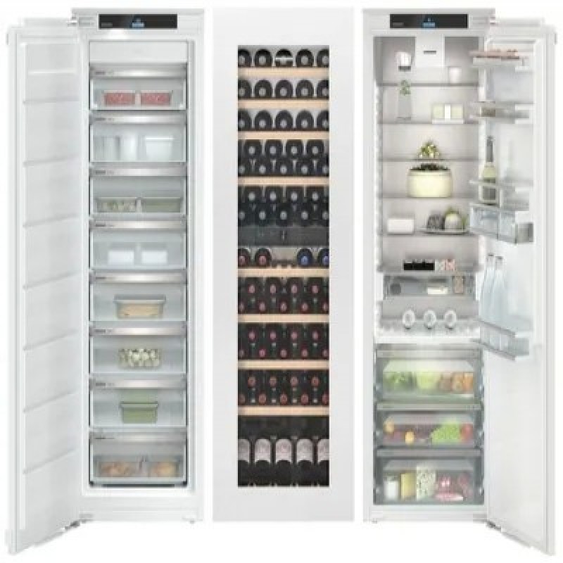 Комбинация Side-by-Side (SIFNe 5178 + EWTgb 3583 + IRBd 5150)Особенности:NoFrostФункция защиты от детейСветодиодное освещение морозильного отделенияСветодиодное освещение зоны свежести BioFreshВинные шкафы серии VinidorФильтр из активированного угляCleaningModeEnergySaverХранение в условиях минимальной вибрацииSuperFrostПревосходная влажностьБлокировка экранаИзолирующая дверь со стеклопакетомPartyModeнормальный режим.Сигнал об отключении питанияHolidayModeBottleTimerАварийный сигнал открытой двериСигнал при повышении температурыМаслёнкаФильтр FreshAir с активированным углём.Поднос для замораживанияАккумуляторы холодаVarioSpaceКонцепция Side-by-SideОбщие данные:Размеры:высота: 181,6 смширина: 171,3 см (55,9 + 59,5 + 55,9)глубина: 57,2 смОбщий объем/ Полезный объем:Холодильника (л): 877/771Холодильной камеры (вкл. зону свежести) (л): 321/291Морозильной камеры (л): 249/209Винной камеры (л): 307/271Тип управления: электронныйКласс энергопотребления: A++/A/A++Климатический класс: SN-T (от +10°С до +43°С) / SN (от +10°С до +32°С) / SN-T (от +10°С до +43°С)Годовое потребление энергии: 553 (271+162+120) кВтч/годЦвет: белыйХолодильное отделение:8 полок из закаленного стекла (из них 7 регулируемых по высоте и 1 разделяемая)VarioSafeКоличество полок на двери для хранения бутылок: 2Количество полок на двери для хранения консервов: 2Контейнеры VarioBox: 2, выдвижныеОтделения в двери: Полка для бутылок и консервовРегулируемые по высоте полки на внутренней стороне двери: Ступенчатая регулировкаМатериал полок на двери: Стекло с планкой из нержавеющей сталиЗона свежести BioFresh с 3 контейнерами на телескопических направляющих с системой SoftTelescopicСветодиодное освещение зоны свежестиГибкое применение в качестве Fruit-&Vegetable-Safe или Meat-&Diary-Safe: 2Автоматическое размораживаниеДвухсторонняя световая панельРегулируемый диапазон температур: от +3 °C до +9 °CКлиматические зоны: DrySafe / Fruit & Vegetable-SafeЦиркуляционное охлаждениеФильтр FreshAir: В клапанеМеханизмы выдвижения ящиков: Полностью выдвигаемые телескопические направляющие с доводчиком и системой амортизации закрытияЛоток для яиц: ВариабельныйМасленкаСухая задняя панельМатериал сухой задней стены: Легированная сталь с SmartSteelВинное отделение:Максимальное количество бутылок Бордо 0,75 л: 83Количество полок: 10, из них 8 выдвигающийся на телескопических шинах и 1 демонстрационнаяМатериал полок для хранения вина: деревоСветодиодное освещение с плавной регулировкой яркости, продолжительно включаемоеЦиркуляционное охлаждениеФильтр из активированного угляМорозильное отделение:Система No Frost (Frost Free, Ноу Фрост)Время хранения при отключении питания: 14 чМощность замораживания в сутки: 18 кгДиапазон температур: от -15 °C до -28 °CСветодиодное освещениеКоличество контейнеров: 8FrostSafe: Полностью закрытые выдвижные ящики с прозрачной передней стенкойМеханизмы выдвижения выдвижных ящиков: Частично выдвигаемые телескопические направляющиеСистема VarioSpaceЛоток для льда с крышкойЧисло аккумуляторов холода: 2Поднос для замораживанияМатериал регулируемых полок: стеклоДополнительная информация:2,4“ TFT-дисплей цветной, сенсорный и свайповый экранЖК-дисплей с цифровой индикацией температуры (винный шкаф)Индикаторы температурыSuperFrost: Настраивается на устройствеСигнал открытой двери морозильного отделения: Настраивается на устройствеBottleTimer: Настраивается через приложениеБлокировка экрана: Настраивается на устройствеSuperCool: Настраивается на устройс
