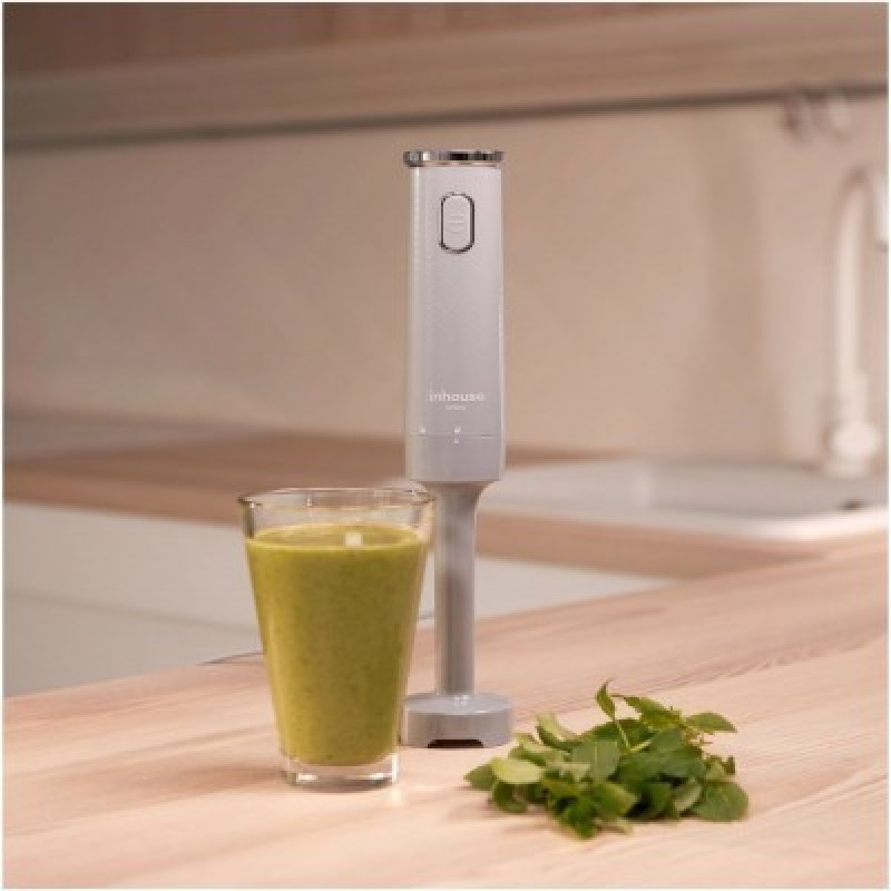 Коротко о товареЦвет товарасерыйМаксимальная мощность500 ВтМатериал корпусапластикМатериал погружной частипластикКоличество скоростей1УправлениемеханическоеНасадкидля приготовления пюре, измельчительДополнительные функцииплавная регулировка скоростиОписаниеПогружной блендер Inhouse IHB50001G с эргономичной конструкцией предельно прост в эксплуатации. Большая кнопка расположена в самом удобном месте корпуса, а рукоятка снабжена текстурным нескользящим покрытием.многофункциональный помощникС помощью стальной насадки с двумя острыми лезвиями можно тщательно перемешать ингредиенты для молочного коктейля, крема, соуса или бисквитного теста. Кроме того, она быстро превратит фрукты или отварные овощи в нежное пюре. Просто нажмите на кнопку, и устройство начнёт работу.защита предусмотренаЕсли возникнет риск перегрева мотора, то сработает система безопасности, и прибор выключится автоматически. Дайте блендеру немного «охладиться» и продолжайте его использование.лёгкость уходаНасадка снимается, поэтому её можно помыть под струёй воды. Корпус же достаточно периодически протирать слегка влажной кухонной салфеткой.Страна: КитайГарантия: 2 годаМатериал корпуса: пластикСрок службы: 3 годаПотребляемая мощность: 500Длина сетевого шнура: 1.2Обратите внимание: Стильный дизайнВажная особенность: Стальной нож с двумя лезвиямиПользователи оценят: Защита от перегреваУдачное решение: Простота в использованииХорошо придумано: Насадка-блендер из нержавеющей сталиПитание от сети 220 В: ДаМатериал лезвия: нерж. стальМатериал погружной части: пластик